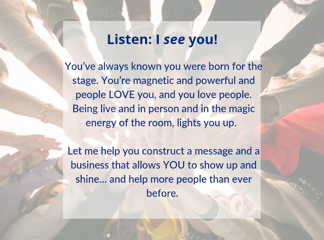 Become a master at delivering your offer from the platform so that your ideal clients decide to work with you before you even step off stage or webinar